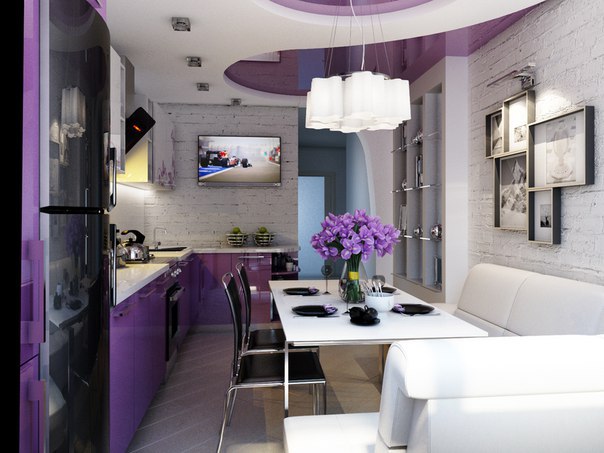 ديكور مطبخ مودرن أبيض وموف بالصور